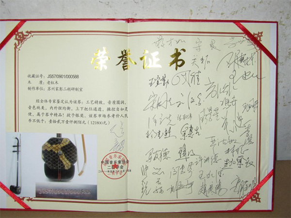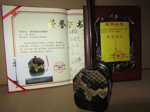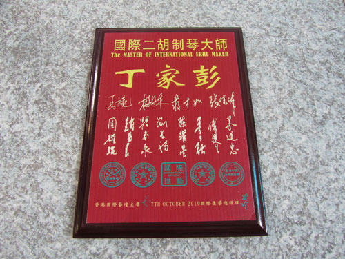 二胡制作大師丁家彭先生1949年出生樂器世家,17歲隨其祖父學琴藝,并深得精髓,其聰穎好學,悉心鉆研與 探求二胡制作,博得同行的欽佩贊許,更得了許多知名演奏家的稱贊,充分認識到二胡制作每個環(huán)節(jié),都對二胡制作都有影響力,因此對二胡的選材,選料,蟒皮都十分嚴格,二胡整體穩(wěn)定性良好,環(huán)境干擾影響極小。